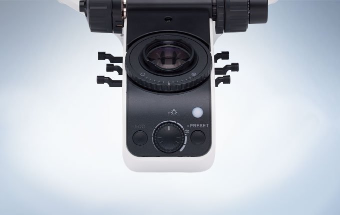 除了人性化双目和三目镜筒以外, 还为实验室讨论提供了可定制的双人观察和多人观察附件。这些系统对于临床观察、教学和指导也有无法估量的作用,如果整个团队都可以通过各自的目镜观察到讨论标本,则更有效。可以有两到十名参与者,甚至更多人参与。
