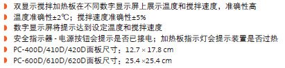 康宁数字显示加热板、搅拌器和搅拌加热板承袭并融合了Pyroceram加热面板(1964年)的优秀品质,所有产品提供两年保修服务。
