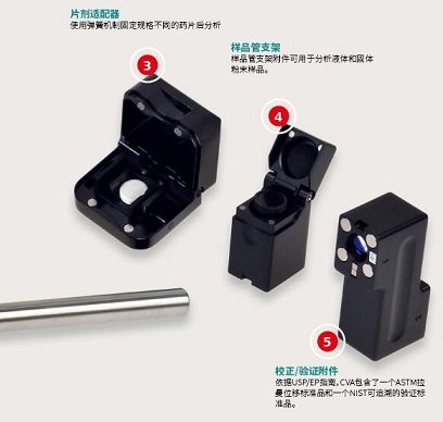Mira系列手持式拉曼光谱仪具备卓越的灵活性和安全性。 您可以将样品放在样品管中测量,也可以透过塑料包装、玻璃容器或其他包装材料直接测量。可供选择的测量附件包括: